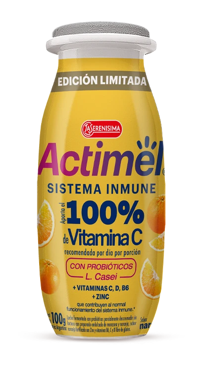 NUEVO Actimel sabor Naranja, una deliciosa edición limitada que aporta el 100% de la Vitamina C recomendada por día. Con probióticos L. casei y vitaminas que contribuyen al normal funcionamiento del sistema inmune y, además, no tiene lactosa y es apto celíaco. ¡No te quedes con las ganas de probarlo!
